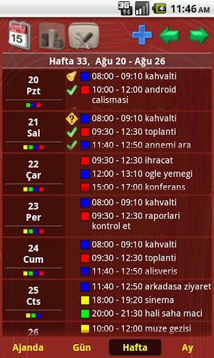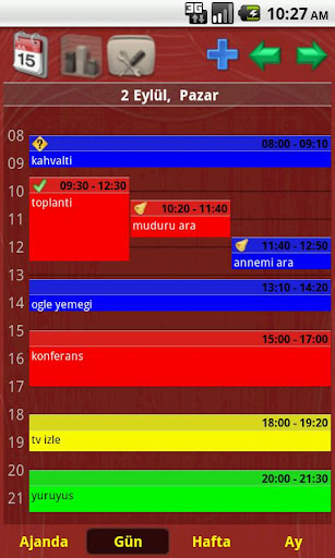 - Ajanda/Günlük/Haftalık ve Aylık gösterim biçimi