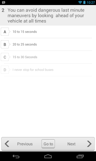 Serious about passing The DMV theory test ? Practice this super realistic 300 question driving theory test to prepare for your 2013-2014 DMV multiple choice test. Definitely a much more fun way to learn than reading the driver manual. Rehearsing the test from your mobile phone at your convenience can save you from any negative surprises through the test. Take this latest mock theory test to boost your confidence for DMV exam. The app is excellent for studying as well as rehearsing.