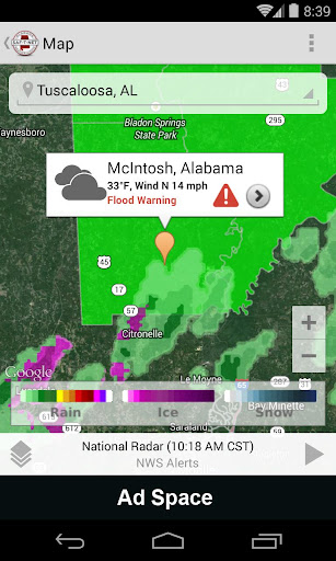 • National Weather Service storm-based warnings for tornadoes, severe thunderstorms and flash floods
