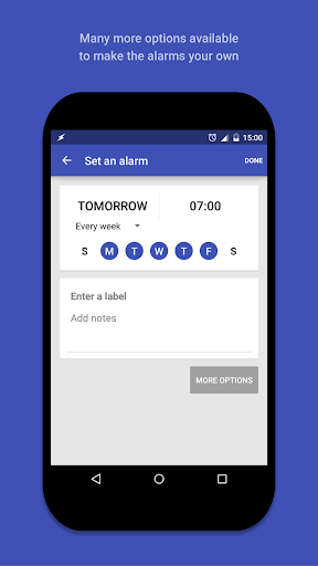 • Advanced mode: Synchronize your alarms with your calendar events (great for shift workers!), restrict them to a specific location and skip them before they ring.