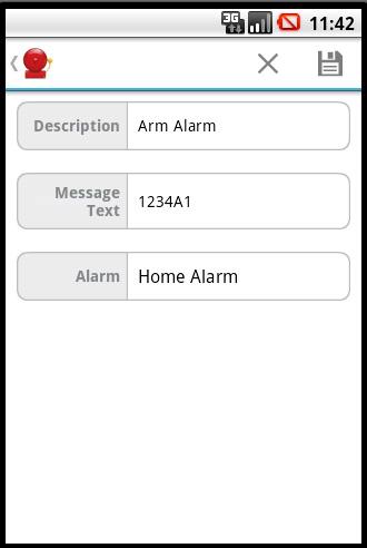 - If you have to send SMS to your alarm system to arm it, disarm it, or to change the settings, you can do this with only one click from this app, as you can save the commands.