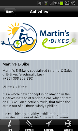 Stop Searching! Now you have found it. Your personal source of information right in your pocket with your smartphone. All important phone numbers, addresses and routes with just one click! In this App you will find everything you need about Albufeira. Restaurants, hotels, doctors, activities, shops,rentals, lifestyle and much more. See also our news and calendar section with the latest things to do in town. When you ask someone about Albufeira, they will say: “it’s a nice city, great food, nice beaches”, etc. But now you can find much more information about the city with just one click. This App combines all that knowledge and makes it accessible for everyone. All places are easy to find with the build in route planner and will lead you directly there. You can even contact the place by email or call directly from the App.