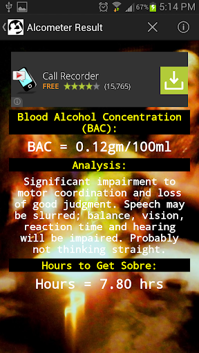 This application intends to estimate Blood Alcohol Concentration (BAC) level based on reaction time and loss in cognitive ability. User has to go through a sequence of tests judging alcohol impairment by testing memory, eyesight, cognitive ability and reaction time. BAC is estimated on the results obtained. The results obtained may not be accurate because such kind of estimation is not yet available anywhere.