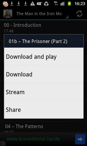 You have the choice of either listening via audio streaming from the internet or you can download the files to your device.