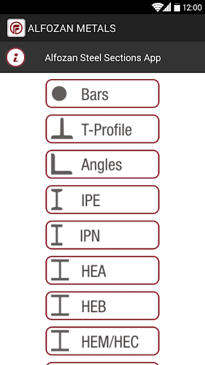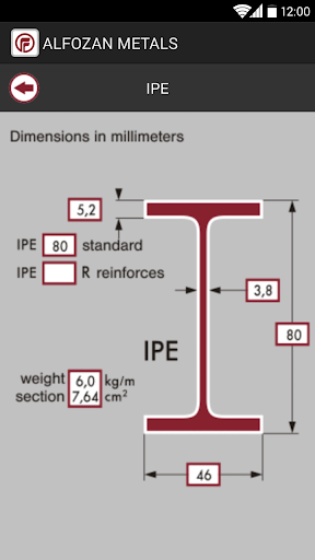 The ALFOZAN METALS Steel Sections App for Android shows the main dimensions, meter weights cross sections of series IPE, IPN, HEA, HEB, HEM, HEC, UAP and UPN steel beams. Angle iron, plate and steel bar as well as scales to calculate steel flats.