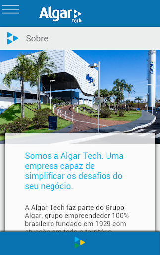 O aplicativo Algar Tech Mobile é um canal de comunicação eficiente para você conhecer a empresa e seus serviços, além de poder acompanhar de perto as novidades e participar de concursos culturais.