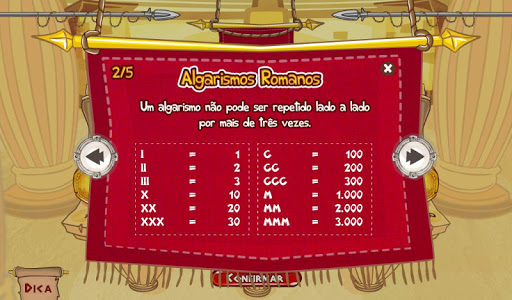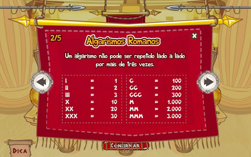 Acumule as moedas, converta o valor total para algarismo romano e continue no comando até se tornar um verdadeiro gladiador romano!