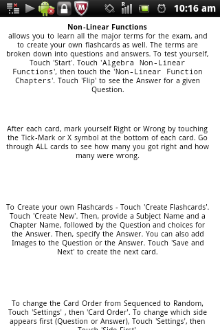 Please press start, followed by press "Algebra Non-Linear Equations" , followed by flick from right to left on the page which says "Questions" (go to next page). To see the answer, touch 'Flip'