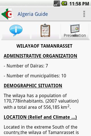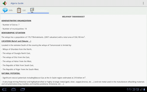 is an Android application developed to offer tourists mainly and Algerians in general, of Practical Information on Algeria :