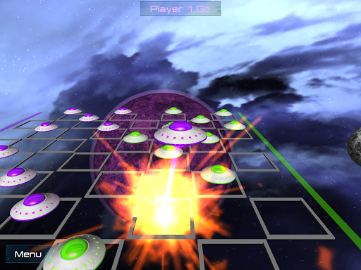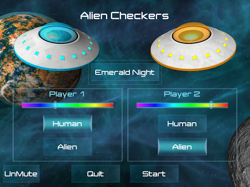 This is Alien Checkers! It's checkers but with an alien twist. When you jump another palyer's UFO, defense cards can turn the tables on your opponent! Game play is simple. Just touch the UFO that you want to move and then touch the highlighted square that you want to move to. Activating a defense card is just as easy, just tap the card to turn it over. This is a great two player game. It's especially fun to play on a tablet with a friend or family member.
