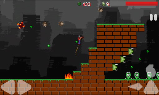 Alien terminator is an action adventure retro style game. You have two type of weapons, gun and grenade to destroy aliens. You can upgrade your character by loot green coins which drops destroyed aliens. Get better gun, better grenade, improve your stamina and destroy all powerful aliens.