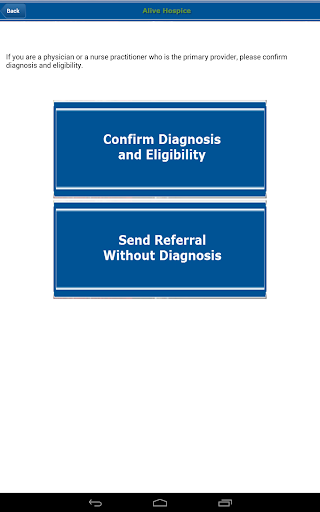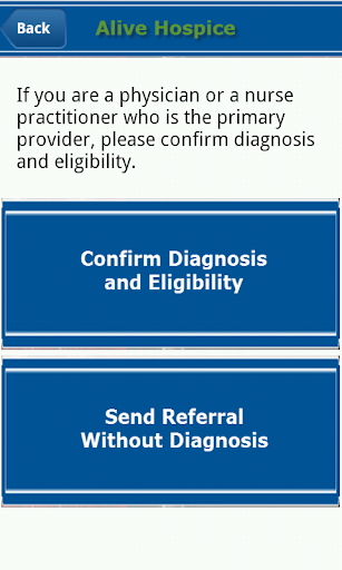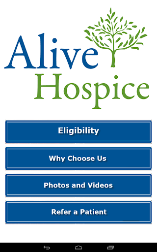 This hospice app provides an easy way for healthcare providers and others to refer patients to contact Alive Hospice in the Middle Tennessee area including Nashville, Murfreesboro, Madison and surrounding counties. The app also provides information about hospice eligibility and diagnoses. Referrals submitted through this app will be received and processed by the Intake department at Alive Hospice. All patient information processed through this referral app will be managed with HIPAA compliance.
