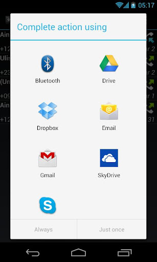You can send recorded calls via e-mail, Skype, any cloud storage (Dropbox, Google Drive, Microsoft SkyDrive, YouTube), Facebook, bluetooth, etc