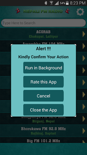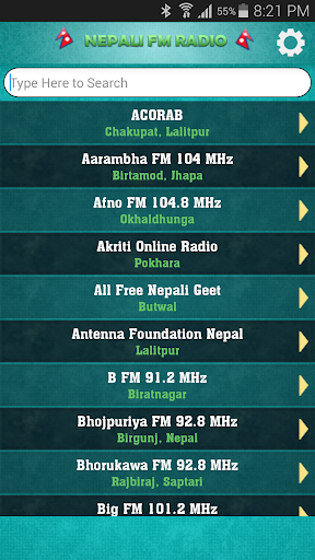 "All Nepali FM Radio" is one of the best feature of this app for the Nepali FM Radio Lovers. From this feature you will able to listen Live and over Streaming to 200 + FM Radio stations from Nepal. For each station you will find more information like address from where they broadcast, Frequency and the website of the station. You can listen to radio stations while doing something else with your mobile. With all types of connections (3G, WiFi ...) stay listening where ever you are.