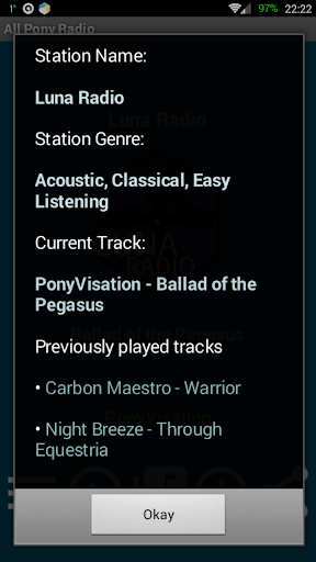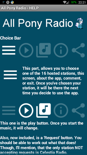 All Pony Radio app gives you access to all of Ponyville Lives' radio stations, playing some of the best brony & My Little Pony Friendship is Magic music, and pumped straight to your ears!