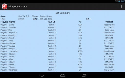 I came to understand that a limitation of keeping this App so simple was the lack of detail it provided the coach with the exact mistakes an individual was making. However, for a coach to enter such detail would mean they would potentially loose sight of what was going on during the game. Such detail is kept ideally in professional sports settings where full analysis was attainable by a statistical staff. So I guess this App is ideal for your everyday coach, needing quick statistics to help make decisions during a game.