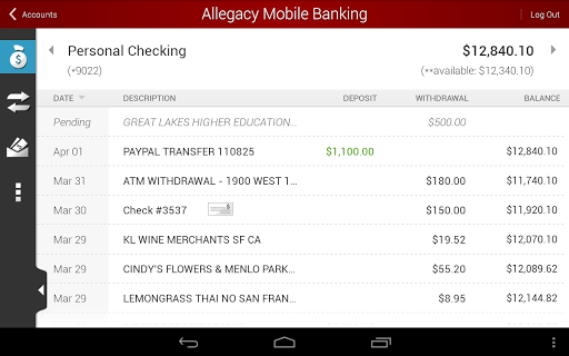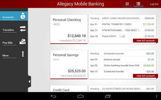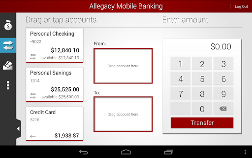 Be connected on the go 24/7! The Allegacy Mobile Banking app for Android enables you to manage your accounts, view latest transactions, pay bills, transfer funds, and locate our branch and ATM network using your geo-location.