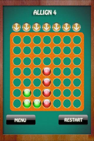 Allign Four is a two-player game in which the players first choose a color and then take turns dropping their colored discs from the top into a seven-column, seven-row vertically-suspended grid. The pieces fall straight down, occupying the next available space within the column.