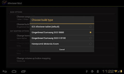 - Change build description between Allwinner, SGS, SGS II and XOOM for games and applications that think your tablet is not compatible with them