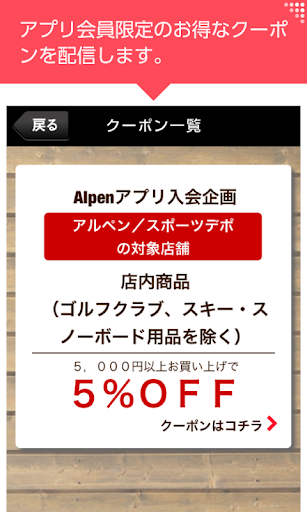 Alpen Groupアプリ、会員限定のお得なクーポンを配信します。すぐにお店で使えます。