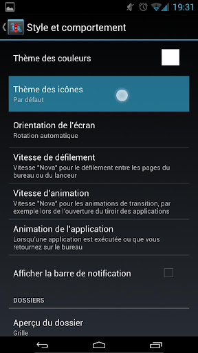 * ADW Launcher: On the home screen, press MENU > More > ADWSettings > Themes Preferences > Choose the theme from the list and apply it.
