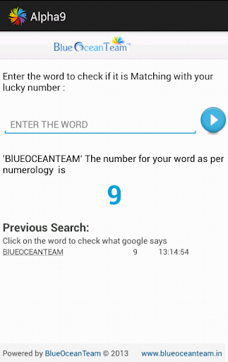Blue Ocean would present a tiny app where it calculates the Numeric Equivalent of the given word as per Numerology.
