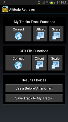 Mobile device GPS altitude data is notoriously error prone. This application will use the latitude and longitude values in a My Tracks track, or GPX file, to retrieve more accurate altitude data from the Internet. Note that if any error in your phone's a latitude and longitude will affect corrected altitude data. This will be most noticeable for data related to canyon and mountain side tracks.
