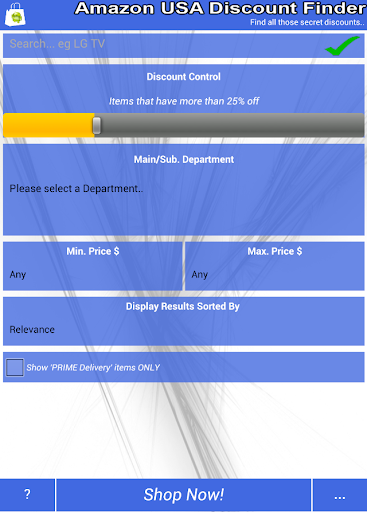 With the Amazon Discount Finder you can search by the discount % that YOU want on the Amazon.com website. This feature isn't normally available though the Amazon.com website so it's been built into this App for you all to use and enjoy.