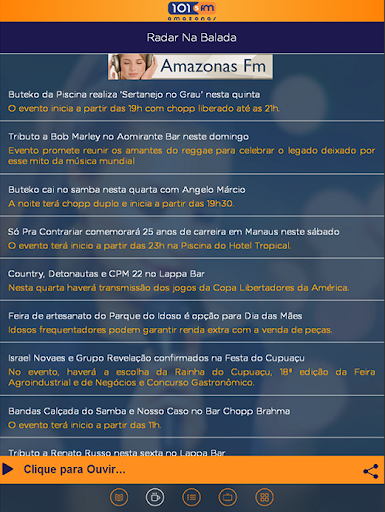No aplicativo da Rádio Amazonas FM você ouve ao vivo os programas da emissora, além das principais notícias do dia, agenda cultural, resenha de novelas e informações das celebridades.