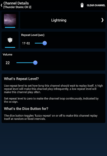 • Sounds of nature, including Wind, Rain, Thunder, Birds, and Cat's Purr.