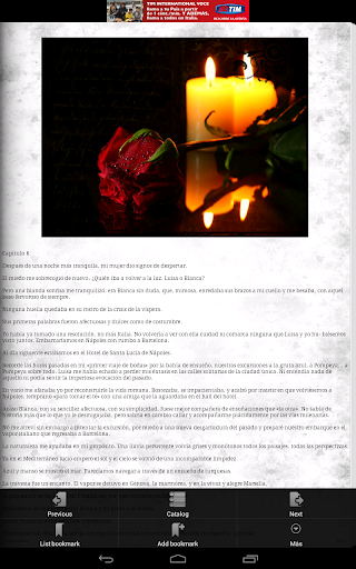- Los ajustes del libro contienen Anterior, Siguiente, indice, Día / Noche, Configuracion y Acerca de.