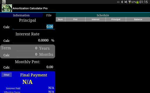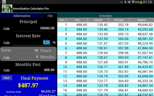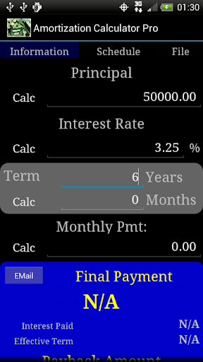 • Thinking about a personal loan or a bank loan, use this app to see how much you will need to pay back per month.