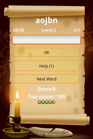You must solve anagrams of varying complexity. Each level you need to solve the 20 anagrams, 3 attempts at each word. The game has 10 levels and about 20000 words.