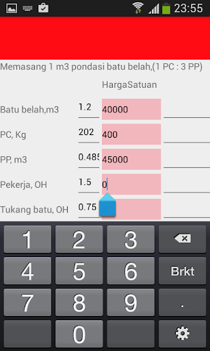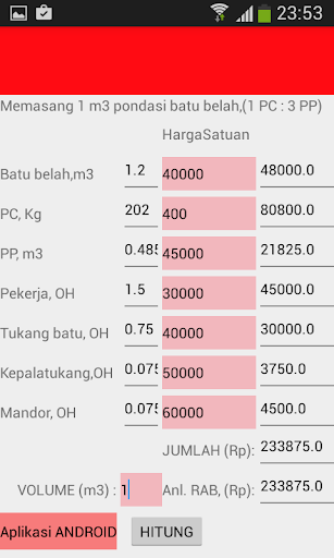 Memasang 1 m2 dinding bata merah ukuran (5 x 11 x 22) cm tebal ½ bata, campuran spesi 1 PC : 2 PP