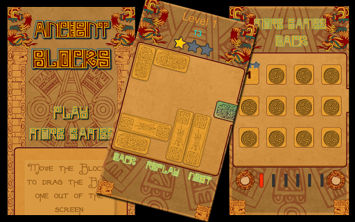 Delve in the mind of the ancient Blocks! In this game you need to figure out old puzzles in order to free the precious blue brick from the maze. Use your finger to drag large bricks around the playing board. They will only move vertically or horizontally. Plan out your moves just right and free the brick. The fastest time gets the most points. Pit your mind against the power of the ancients in the game Ancient Blocks!