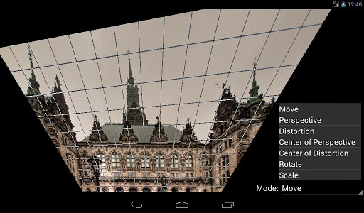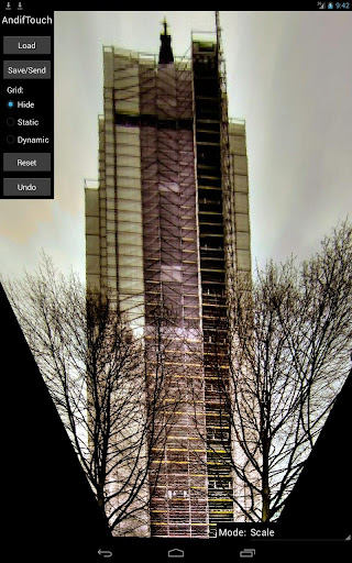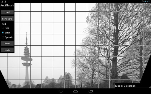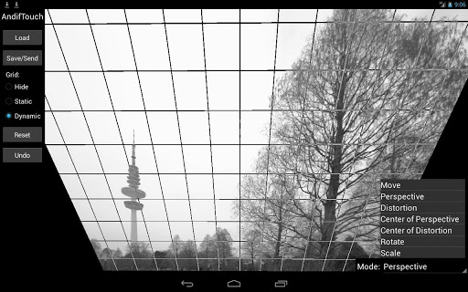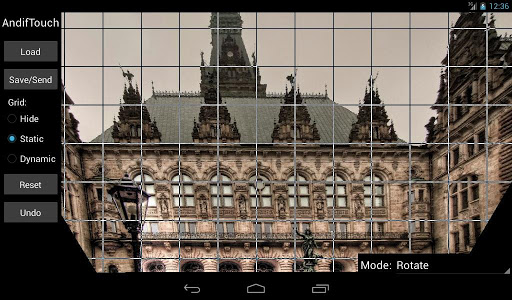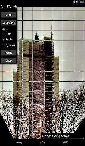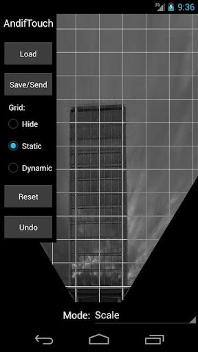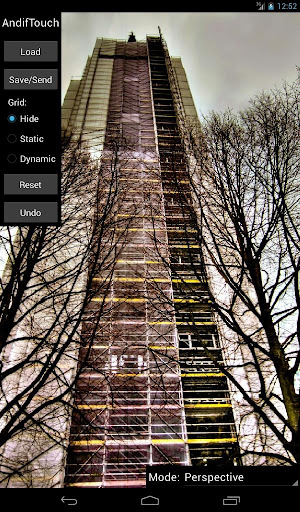 AndifTouch is an app to interactively correct radial and perspective distortions in pictures. Radial distortions are typical for wide angle photography (e.g. fisheye effect and barrel distortion, in german: Fischaugen Effekt and tonnenförmige Verzeichnung). Perspective distortions (keystone effect, tilt and shift or in german: Stuerzende Linien) occur often in architectural photography.