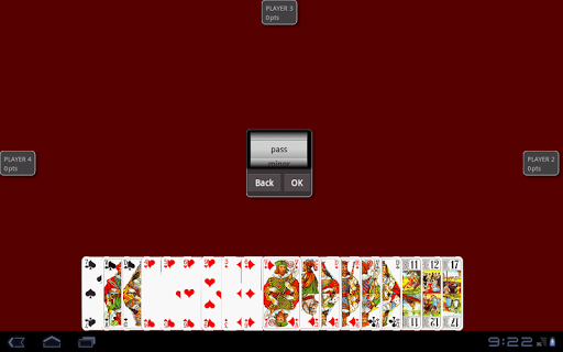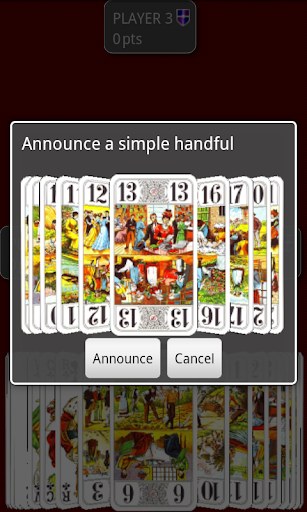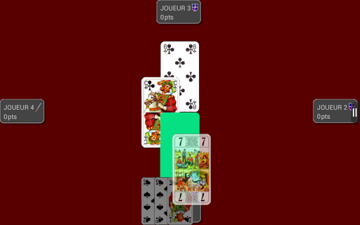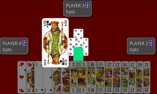 With this game, you can play Tarot in 3 up to 5 players with king call. Three difficulty levels are available. The multiplayer game will make you play with friends locally (Bluetooth, Wifi) or with anyone in the world (Internet).