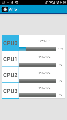 Anfo can give lots of informations about your CPU, each CPU core, RAM, SD cards, your battery etc