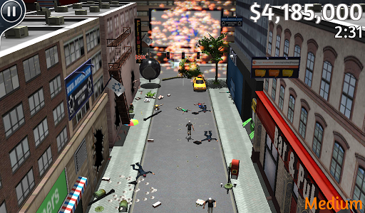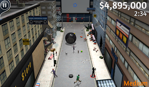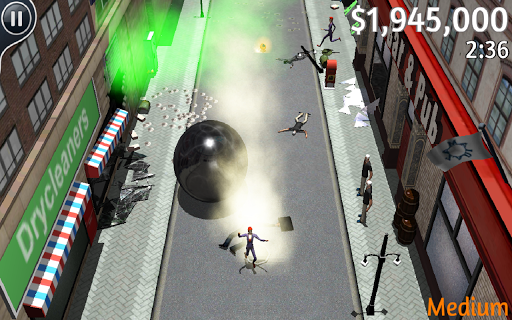 Finally all the bad people in the city are stealing cars to try to escape the wrath of the ball. However the ball follows them once again and destroys them and their automobiles as they try to flee.