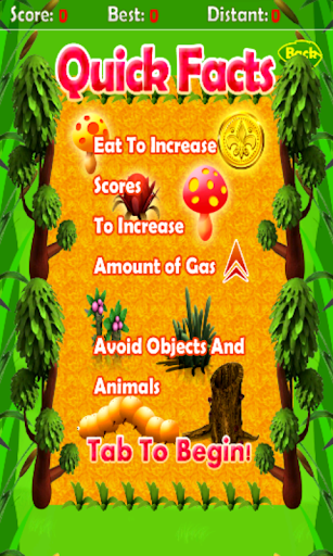 - There are many variety items in game screen. The beetle wants to eat the eatable items and avoid the bad items by rolling over and over forward.