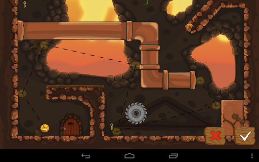 Соберите ключи, чтобы открыть дверь на следующий уровень. Старайтесь не дотрагиваться до пил.