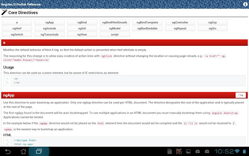 This free third-party pocket reference contains simplified excerpts from the official Angular docs. It is designed simply as a convenient tool for becoming familiar with Angular terminology and features. For a concise reference and complete overview, check out the O-Reilly book by Brad Green and Shyam Seshadri.