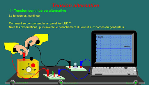 1. A l'aide d'un générateur TBF, d'une lampe et de 2 LED, distinguer tension continue et tension alternative.