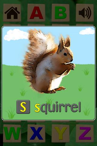 Learning English alphabet has never been so interesting and fun! Each 3D letter turns around its axis when your child touches it. This animation is always accompanied by an image showing a corresponding animal and a sound pronouncing a letter and an animal name.
