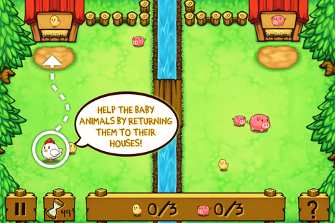 Help the baby farm animals find their way home! In Animal Line Crossing you have to guide the chicken, pig and sheep mothers across the screen collecting their babies on the way and taking them back home. A cute and challenging little adventure for kids and adults!