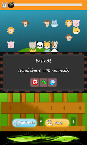 game- you must find the icons that link together in some way! When you make a linked match the animal game it will show the link. You also get some help along the way. You can use the REFRESH button 3 times, this mixes up the game cards so it is easier to find linking matches. You can also use the FIND button 3 times, and this will find the matching links for you.