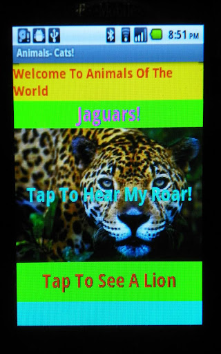 Hi Everyone and Thank You for visiting our page. This App in the Animals of The World Series, is dedicated to the cats. Our App presents various Cats and shows them in exciting state. Tap them and you can hear the noises they make. Hear the growls of a lion or hear the snarls of a Panther. You can hear this and many more in our wonder App - Animals of the World - Cats!. My Kids love this, and i hope your's will too. Have a great time with it. :)For More Apps, visit: