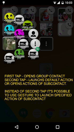 Group contacts is advanced folder of contacts, that allows to start any action of any contact in 2-3 taps. Skin, color and image customization will help you to highlight contacts and find them on the screen quickly.