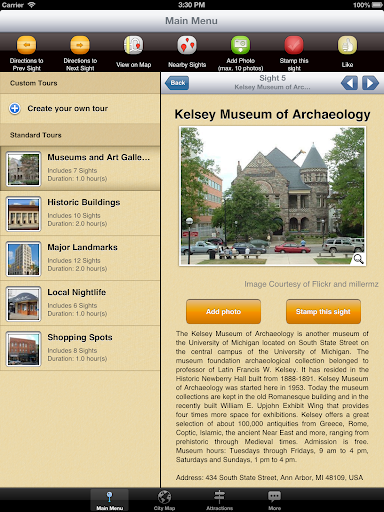 This handy application presents you several self-guided walking tours to see the best of the Ann Arbor, Michigan, and it comes with detailed tour route maps and powerful navigation features to guide you from one sight to the next. No need to hop on a tour bus or join a tour group; now you can explore all of the best attractions on your own, at your own pace, and at a cost that is only a fraction of what you would normally pay for a guided tour.
