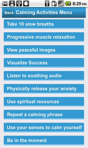 You then move on to the first set of skills, where you will select one of ten different calming activities to perform.